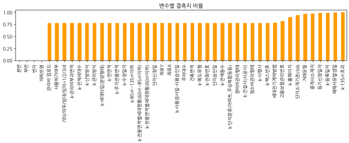 - 결측치 90% 이상 차지하는 변수 제거