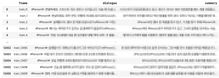 - 최소 2 턴, 최대 60 턴으로 대화가 구성, 대화(dialogue)를 보고 이에 대한 요약(summary)을 예측하는 것이 최종 목표