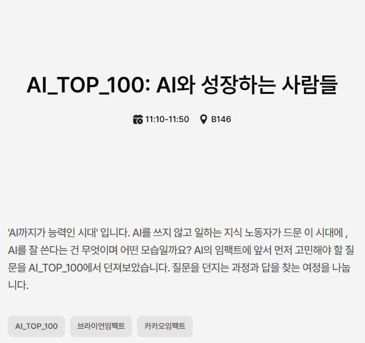 이 세션은 추첨 of 추첨이었다. AI 교육 쪽으로 진로를 틀면서 교육사업자로서의 관점도 알고 싶어서 신청했었는데 광탈...