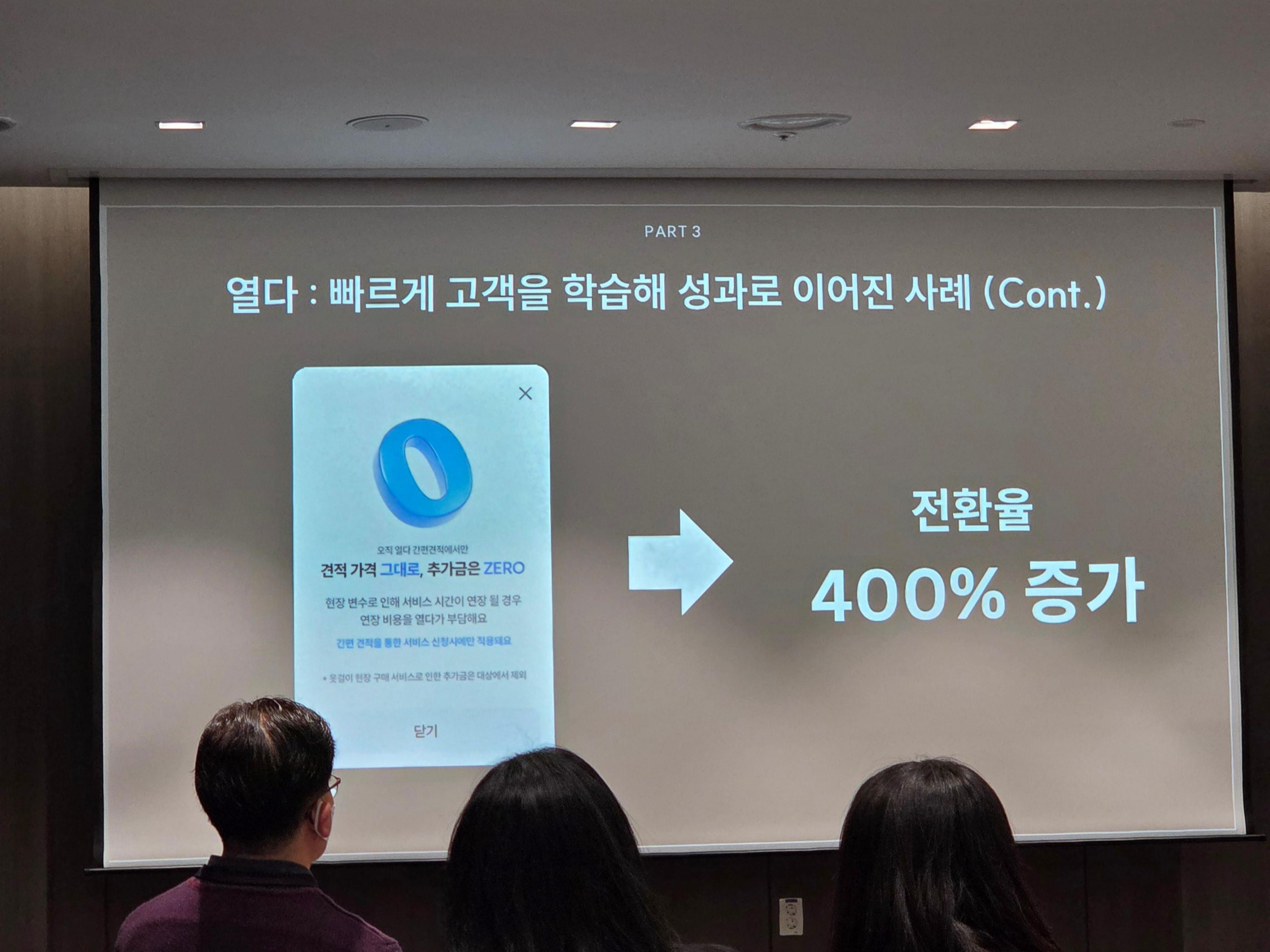 연사자분은 청소 정리 업체 '열다'의 대표님이셨는데 비전공자인 상태에서 시작하여 지금은 정리하시고 새로운 사업을 준비 중이셨던 걸로 기억한다. 기술로 풀어내기보다는 고객 중심의 사례를 풀어내면서 기술 창업을 시작하는 이들에게 흔히 겪을 수 있는 시행착오를 방지하는 내용이 주였다.