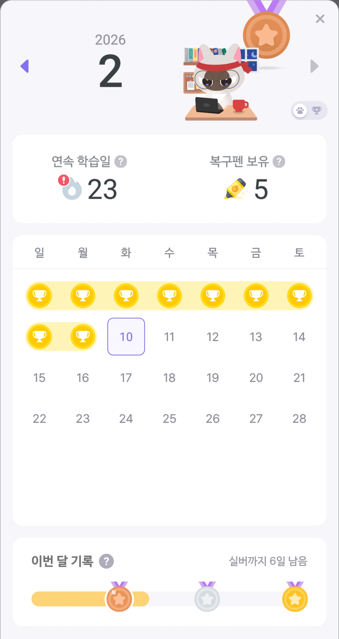 비록 박람회를 갈 때만 해도 케이크라는 어플을 사용해 영어 공부를 하고 있었지만 이후 말해보카로 다시 넘어왔다. 한창 미드로 영어공부하는 것에 빠져서 말해보카에서 케이크로 넘어간 것이었는데, 케이크.... 너무 구리다. UI도 몇 년째 그대로 발전이 없고, 동기부여 해주는 요소도 없고, 발음 교정도 안해준다(이상한거 말해도 정답으로 인식됨). 이번에 말해보카가 완전 대내외적으로 폼이 올랐기도 하고 이번에 설명회를 들으면서 더욱 호감도가 UP 되어 케이크의 1년 정기구독 갱신을 연장하지 않고 말해보카로 넘어왔다.