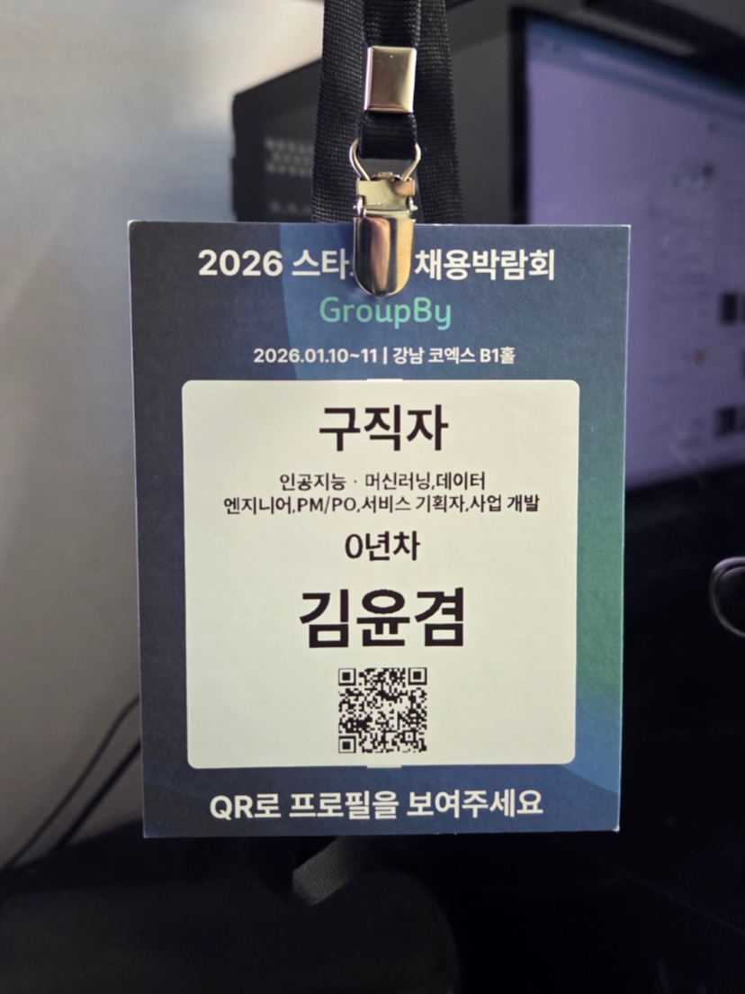 알고 보니 이 청년, 나랑 같은 그룹바이 채용박람회가 목적지면서 경력 1년 차의 AI엔지니어였다. 뭐라고 부르면 되냐고 물었는데 이름이 두 줄이 넘어가더라ㄷㄷ 쉽게 부르는 이름을 알려줬는데 지금은 기억이 안 난다. 도착해서 나는 일행이 있다고 빠이빠이 했는데 둘러보는 내내 생각보다 자주 마주쳐서 조금 머쓱했다. 심지어 일행 아직 안 왔었는데 좀 더 얘기할걸 그랬나 싶기도 하고🙄